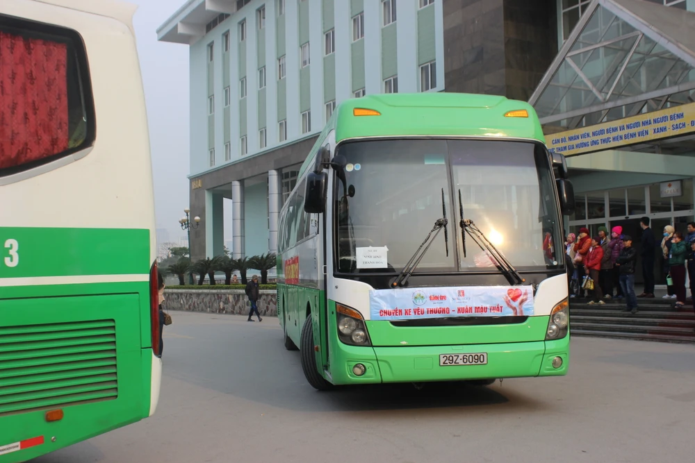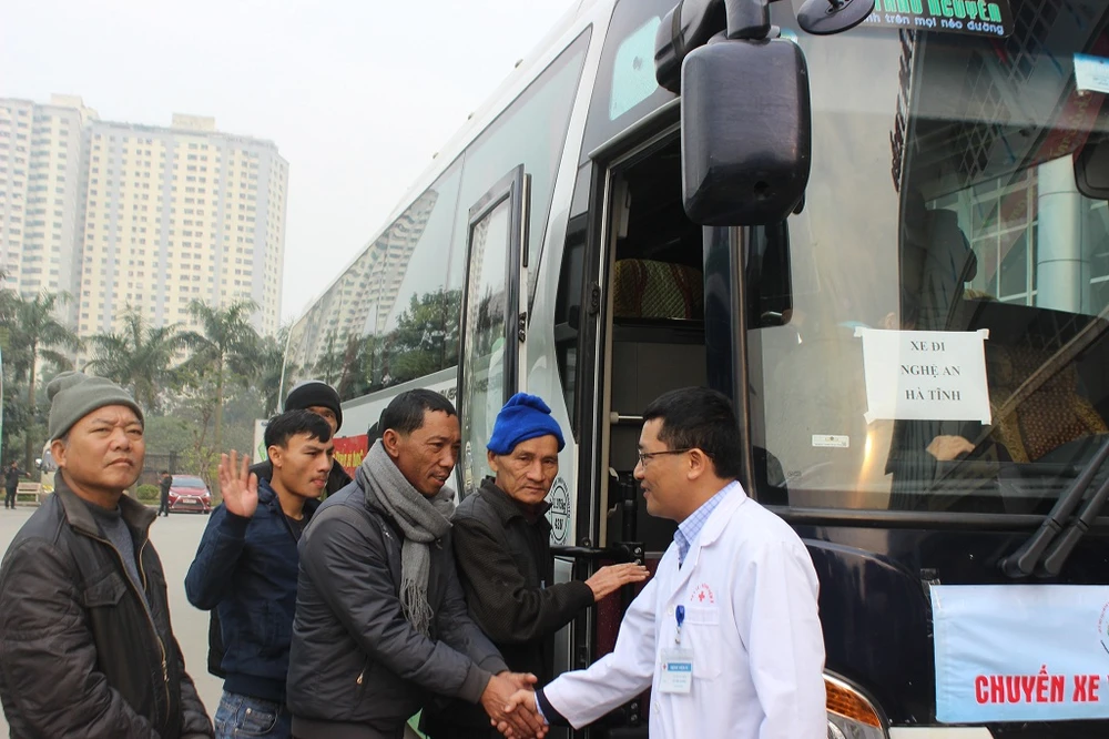 Đã có 22 chuyến xe ô tô 45 chỗ miễn phí đi các tỉnh thành đưa người bệnh và người nhà người bệnh về quê đón Tết.