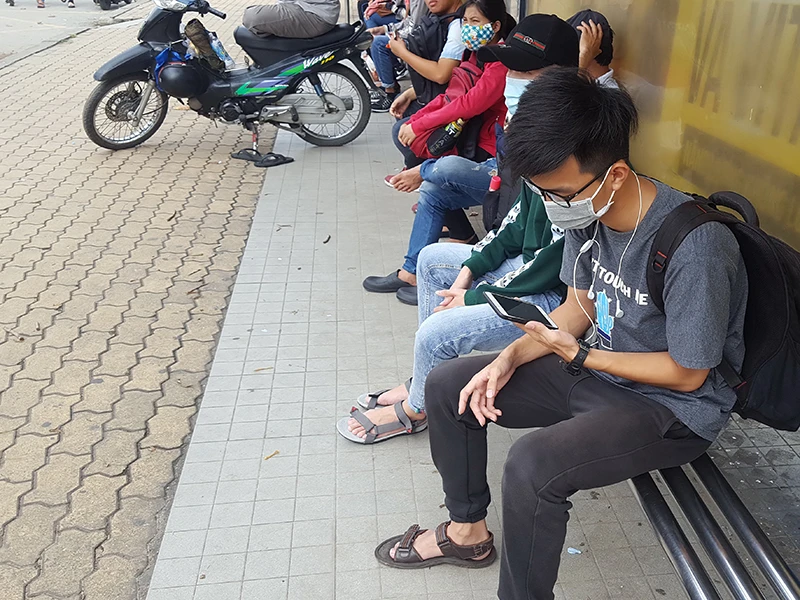 Sinh viên Trường ĐH Sư phạm kỹ thuật TP.HCM đang tìm hiểu các tuyến xe buýt trên Busmap. Ảnh: ĐÀO TRANG