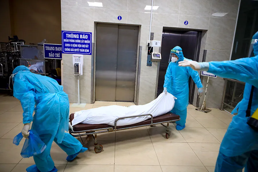 Nhân viên y tế BV Chợ Rẫy xử lý thi thể bệnh nhân mắc COVID-19.