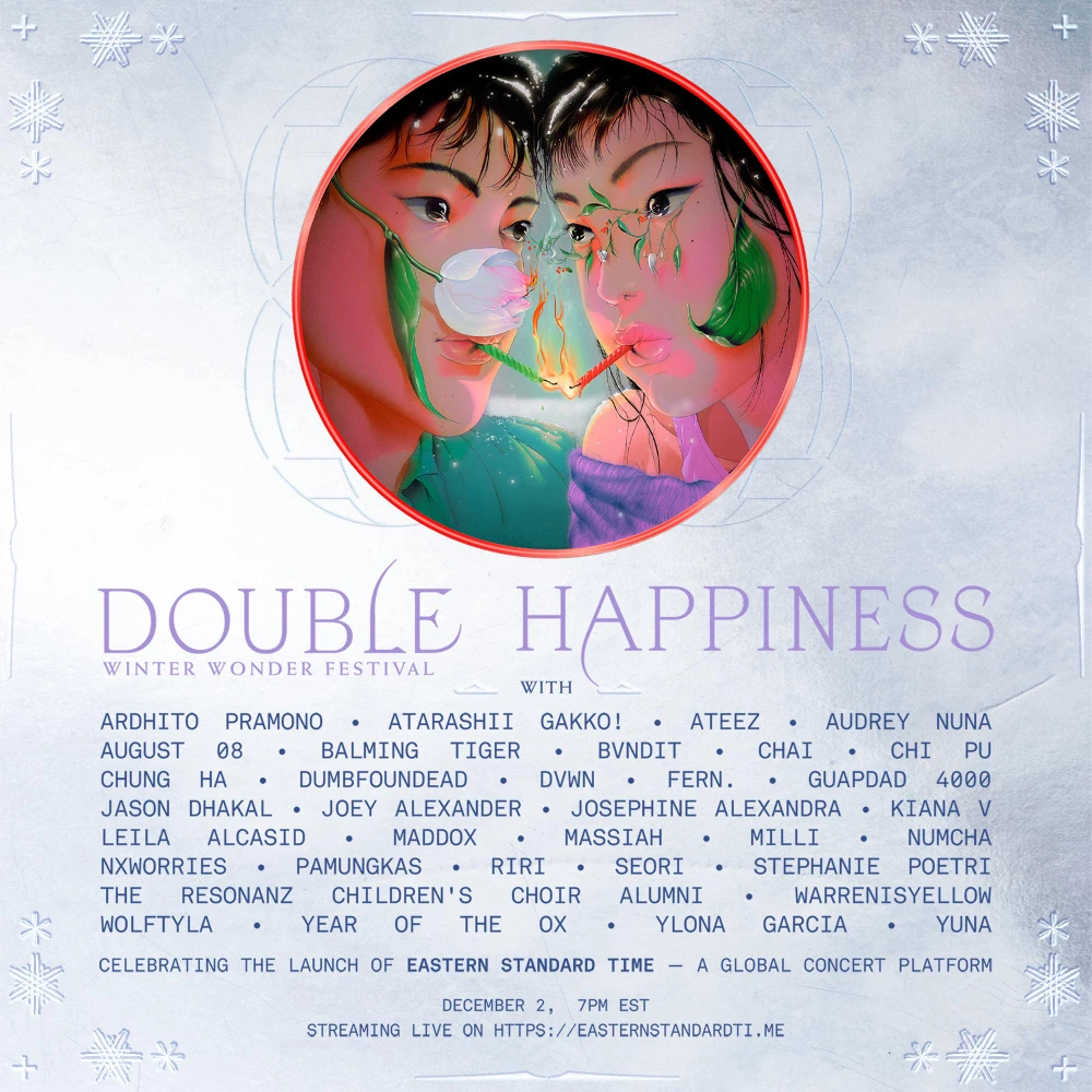 Double Happiness - Winter Wonder Festival có thời lượng tám tiếng, sẽ được công chiếu trực tiếp miễn phí trên nền tảng livestream Eastern Standard Time, bắt đầu từ 7 giờ sáng nay, 3-12 theo giờ Việt Nam.