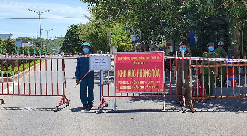 Phong tỏa thôn Phú Vang, xã Bình Kiến, TP Tuy Hòa, nơi có nhiều ca mắc COVID-19. Ảnh: TẤN LỘC