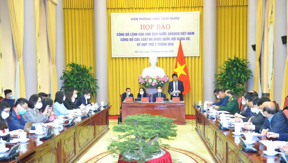 Văn phòng Chủ tịch nước tổ chức công bố hai luật được Quốc hội thông qua tại kỳ họp thứ 2. Ảnh: NGỌC THẮNG