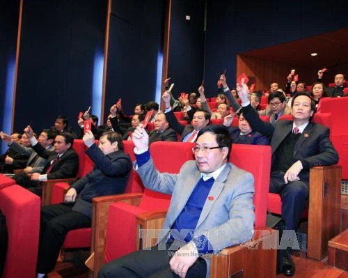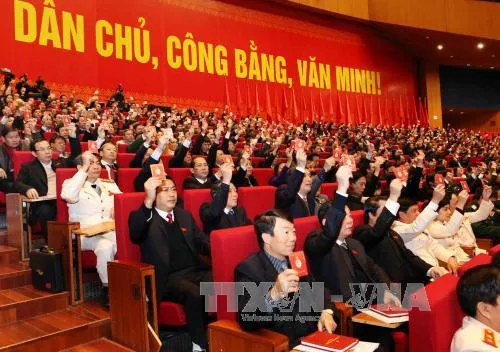 Các đại biểu biểu quyết thông qua kết quả bầu Ban Chấp hành Trung ương Đảng Khóa XII . Ảnh: TTXVN