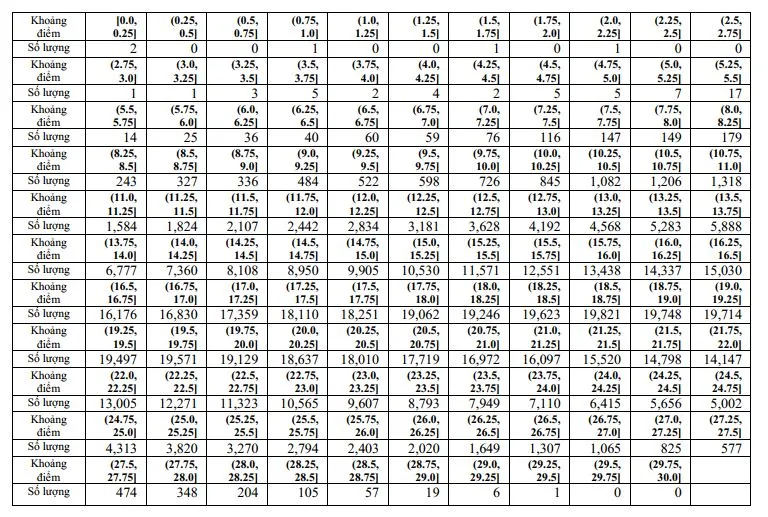Khoảng điểm 0,25 ở tổ hợp A00 |