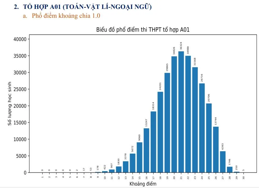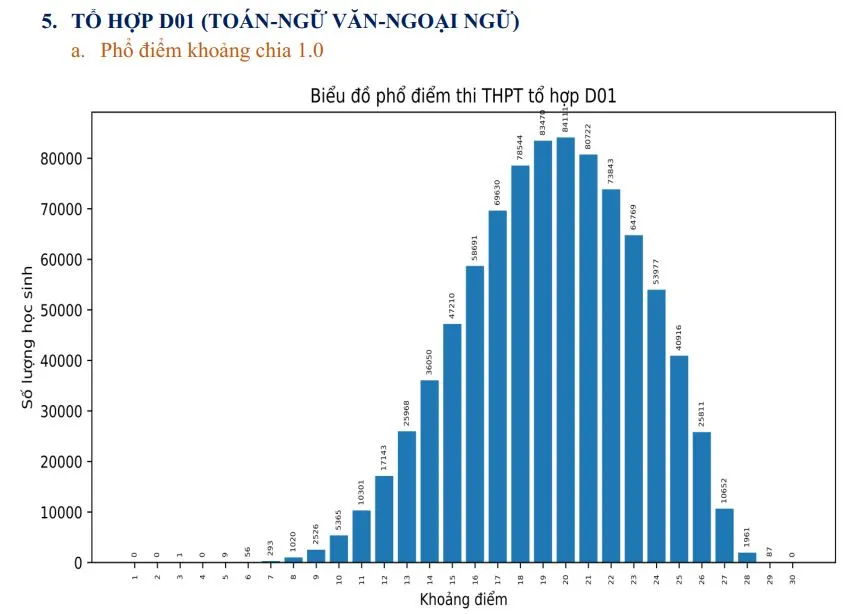Cụ thể phổ điểm 5 tổ hợp môn như sau:
