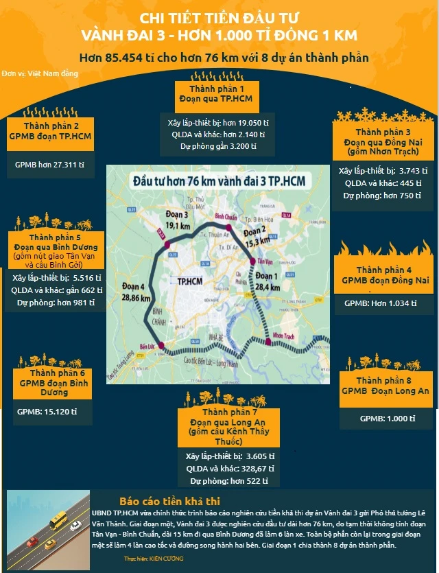 Kiến nghị hỗ trợ hơn 83.000 tỉ để làm đường vành đai 3 (PLO)- 83.290 tỉ đồng mà TP.HCM, Đồng Nai, Bình Dương, Long An xin Chính phủ là để giải phóng mặt bằngvà đầu tư đường song hành hai bên.