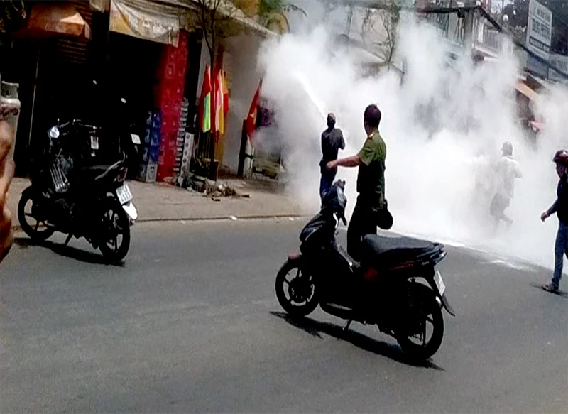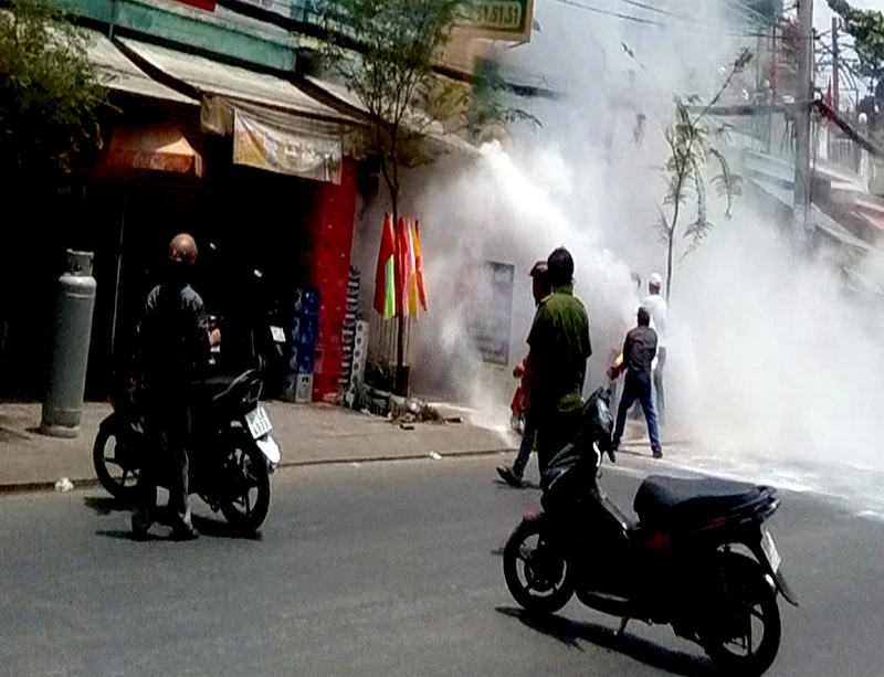 Lực lượng chức năng sở tại đã dùng các biện pháp dập lửa tại chỗ tránh gây cháy lan, nổ gas.