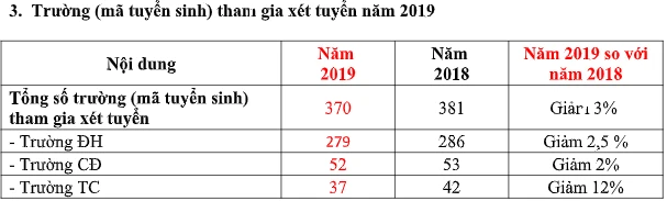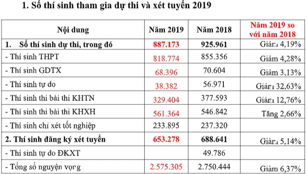 Số thí sinh tham gia dự thi năm 2019 giảm 4,19% so với năm 2018.
