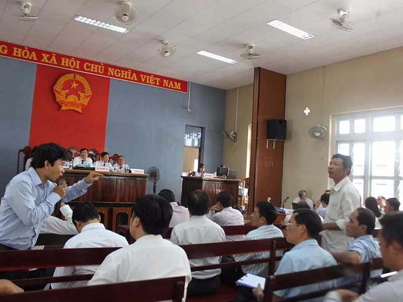 Quang cảnh phiên tòa xử vụ dân kiện doanh nghiệp xả thải làm cá chết ngày 15-12, tại TAND TP Vũng Tàu, Bà Rịa-Vũng Tàu. Ảnh: TRÙNG KHÁNH