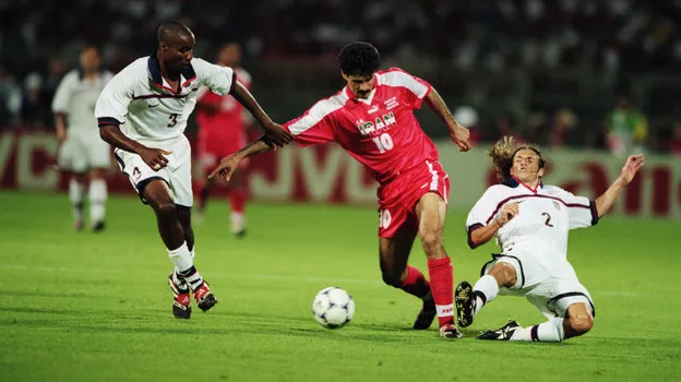 Hồi France 98 Iran đã thắng Mỹ 2-1. Hai bàn thắng của Iran do công Hamid Estili và Mehdi Mahdavikia ghi vào các phút 40 và 84, còn bàn rút ngắn cũa Mỹ do công Brian McBride ghi phút 87.