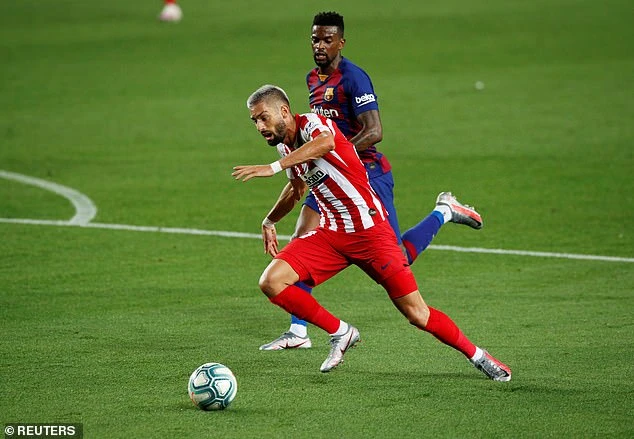 Hai lần Carrasco té trong vòng cấm đều mang về phạt đền cho Atletico Madrid. Ảnh Reuters.