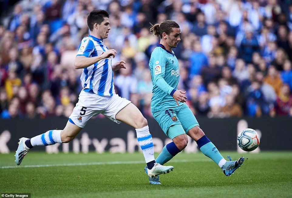 Tuy chơi hay nhưng chỉ cần một sai lầm nhỏ khi để mất bóng ở giữa sân cũng khiến cho Real Sociedad trả giá bằng bàn thua ở phút 38. Suarez sau khi cướp bóng từ khu vực giữa sân nhanh chân phát động phản công và kiến tạo cho đồng đội Griezmann. Tiền đạo người Pháp xâm nhập vòng cấm rồi bấm bóng kỹ thuật qua đầu thủ môn Remiro, gỡ hòa 1-1 cho Barca trước khi hiệp 1 kết thúc.
