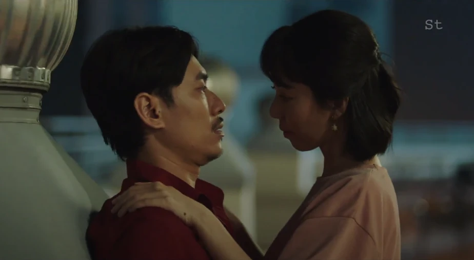 Nụ hôn điện ảnh đầu tiên của Thu Trang trong Chìa khoá trăm tỷ. Ảnh: PHP