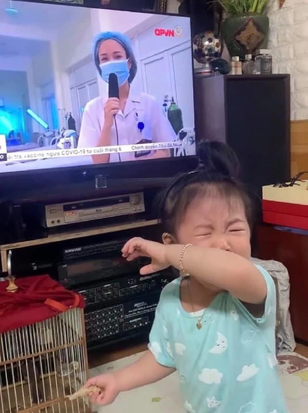 Trưa hôm qua, 29-5, em gái gửi cho chị Hạnh đoạn clip ghi lại cảnh chị xuất hiện trên tivi nói về dịch bệnh. Đúng lúc này, bé Kem ở nhà đang ăn cơm, thấy mẹ trên tivi liền khóc oà, chìa tay muốn được bế. Cả nhà đều bất ngờ vì Hạnh đeo khẩu trang nhưng con vẫn nhận ra. Ai cũng thương, gạt nước mắt khi nhìn thấy bé Kem nằng nặc đòi mẹ sau đó.