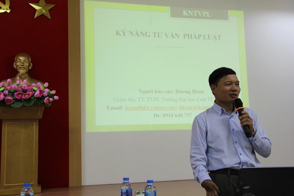 Các kỹ năng về tư vấn pháp luật trong các lĩnh vực dân sự, kinh tế, hành chính do ông Dương Hoán, Giám đốc Trung tâm tư vấn pháp luật Trường ĐH Luật TP.HCM, trình bày như mục đích của việc tư vấn, các hành vi bị cấm khi tư vấn...