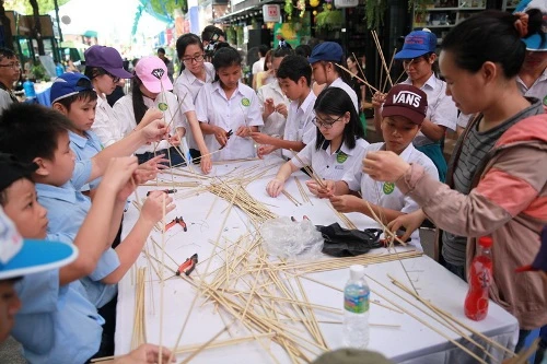 Các em cùng tham gia thi làm lồng đèn trên Đường Sách
