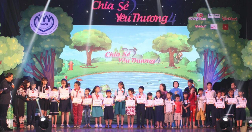 Đại diện lãnh đạo của Hội Bảo vệ quyền trẻ em Việt Nam, đại diện lãnh đạo TP.HCM cùng các sở, ban, ngành và đại diện các đơn vị có trẻ trao quà.