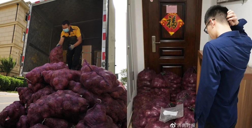 Một tấn hành tây được gửi đến nhà bạn trai cũ của cô gái. Ảnh: SHANGHAIIST