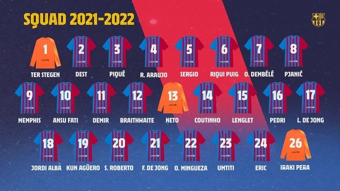 Số áo của các cầu thủ Barca ở mùa giải mới. Ảnh: Fc Barcelona