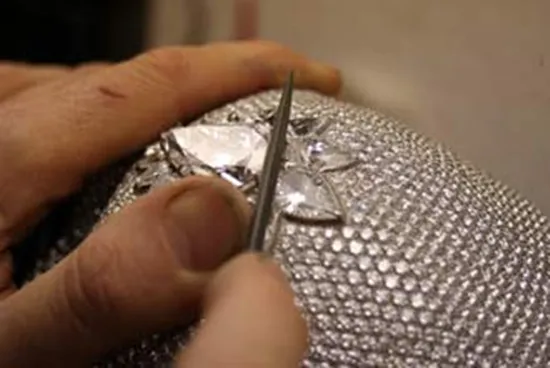 Viên ngọc đính giữa trán có kích thước lớn nhất, ánh hồng, không tỳ vết và được bao bọc bởi 14 viên nhỏ xung quanh. Tác phẩm “For the Love of God” sử dụng quá nhiều kim cương đến nỗi làm khan hiếm cả thị trường đá quý toàn cầu.