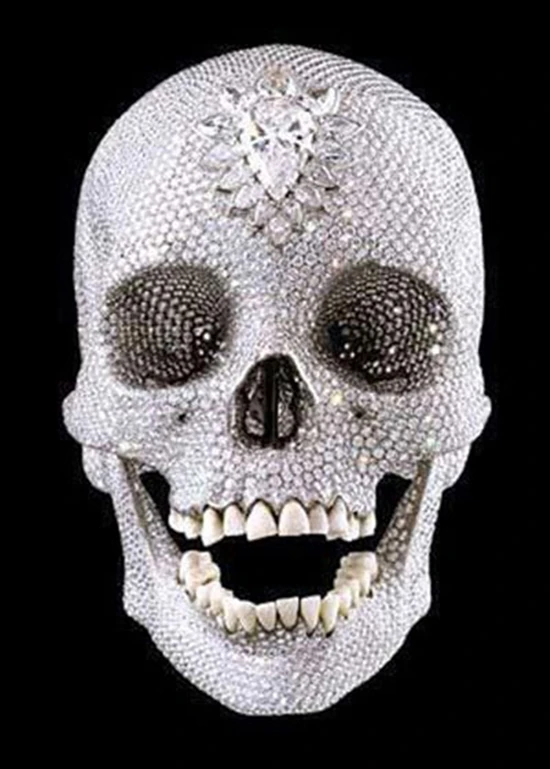 Damien Hirst - “đứa con hư hỏng” của nghệ thuật đương đại Anh đã từng ra mắt công trình có một không hai trong lịch sử: chiếc đầu lâu đúc bằng vàng trắng nạm 8.601 viên kim cương với tổng trọng lượng hơn 1,1 triệu ca-ra. Chi phí thực hiện tác phẩm lên tới 15 triệu USD.