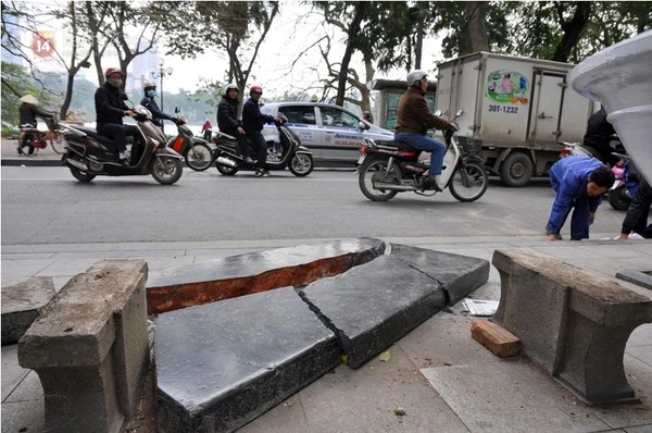 Cặm cụi nhìn chiếc từng mảnh vỡ của chiếc ghế dưới vỉa hè, ông Kha, 63 tuổi, ở phường Hàng Đào (Hoàn Kiếm, Hà Nội) ngậm ngùi: “Chiếc ghế đá đã gắn bó với tôi ngay từ những ngày còn nhỏ. Khi về già tôi có nhiều thời gian hơn đi tập thể dục, tôi lại hay ra đây ngồi… Thế nhưng, giờ nó lại bị vỡ, nhìn mà thấy tiếc quá”.