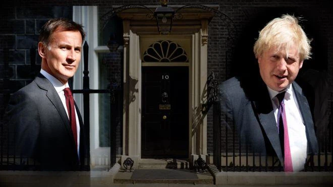 Ứng viên nhiệt tình cho Brexit Boris Johnson (bên trái) và Ngoại trưởng Jeremy Hunt chính thức cuộc đua vào Số 10 phố Downing. Ảnh: BBC
