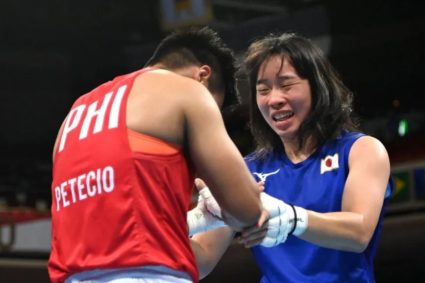 Sena Irie hạnh phúc sau khi đánh bại Petecio của Philippines. Ảnh: Getty