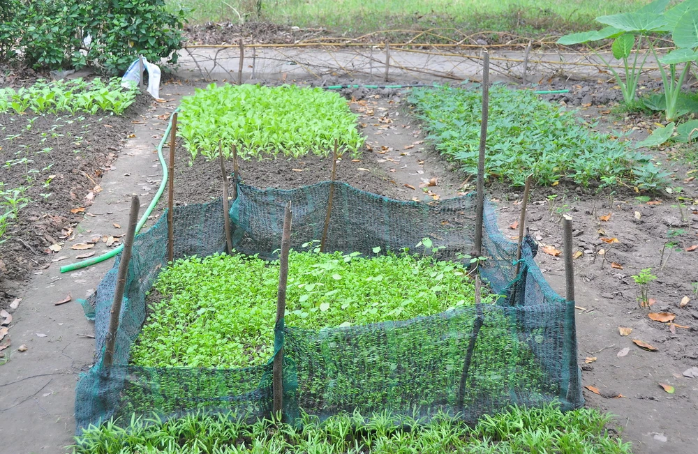 Một số hộ còn vây lưới, bảo vệ đám rau khá kỹ. Ảnh: MP