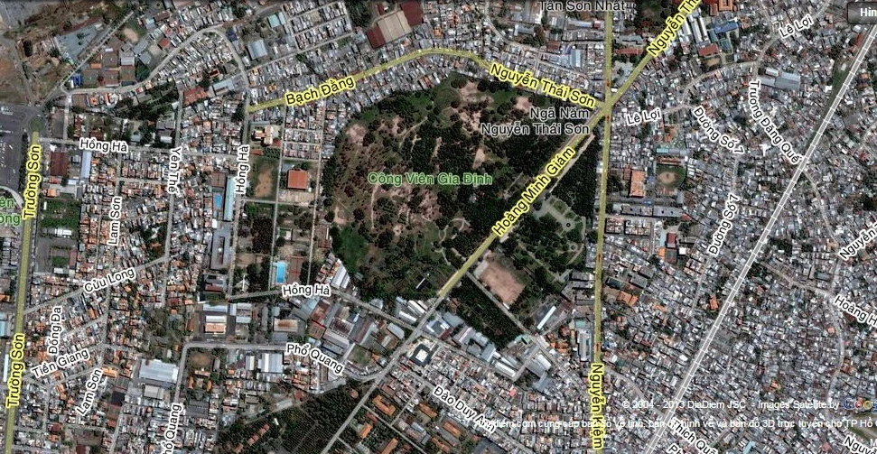 Công viên Gia Định khá lớn, có trục đường Hoàng Minh Giám đi xuyên ngang. Ảnh: MP