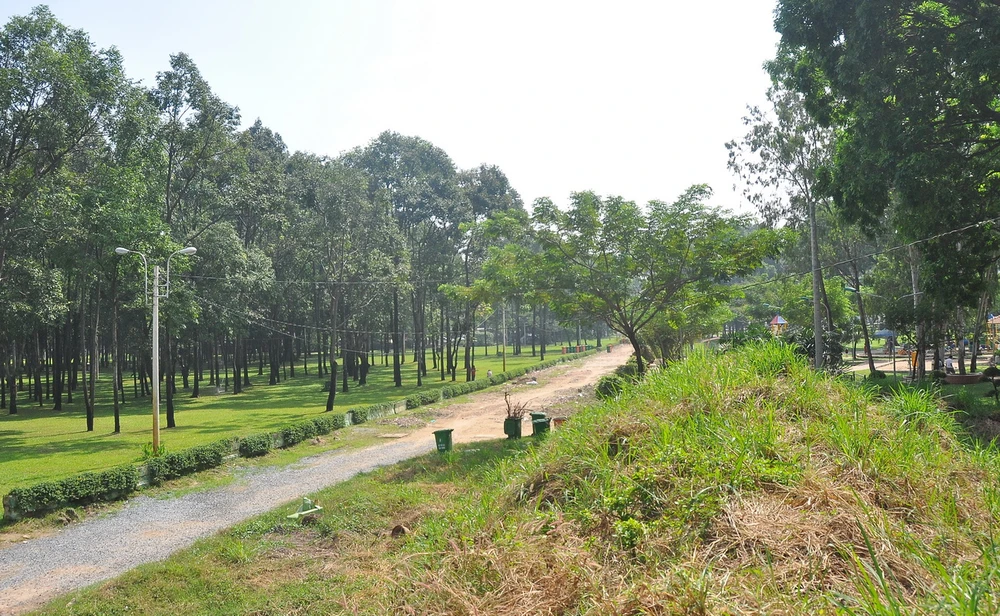 Con đường nội bộ này cũng chia cắt công viên thành hai “thế giới” khác biệt hoàn toàn. Ảnh: MP