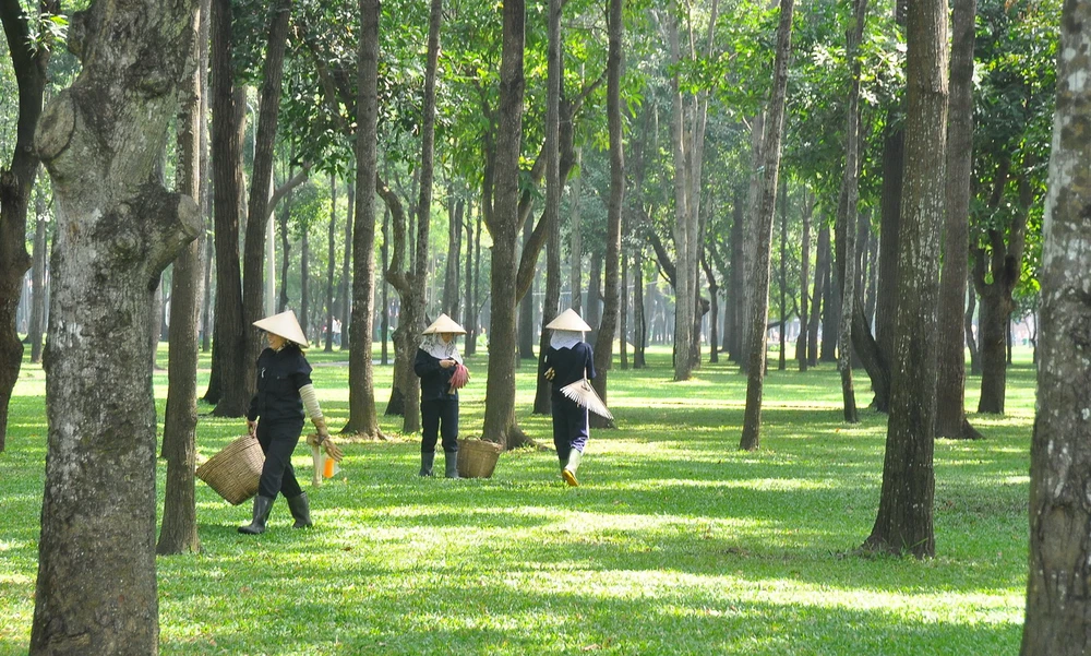 Nhiều người dân đã tận dụng sự lãng phí đang tồn tại ở công viên Gia Định nên tạm chiếm dụng một phần đất bên trong công viên để lên luống trồng rau. Ảnh: MP