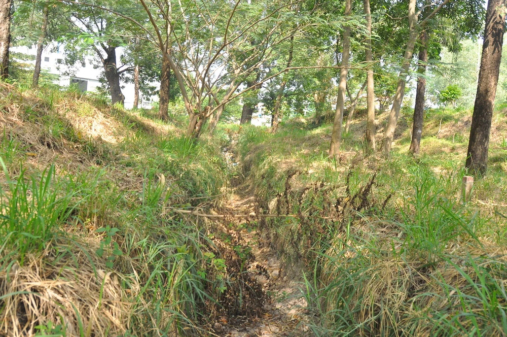 Ngược lại một bên để hoang hóa, cỏ dại mọc đầy và người dân ở đây cho biết, việc để hoang hóa này đã xảy ra từ nhiều năm trước. Ảnh: MP