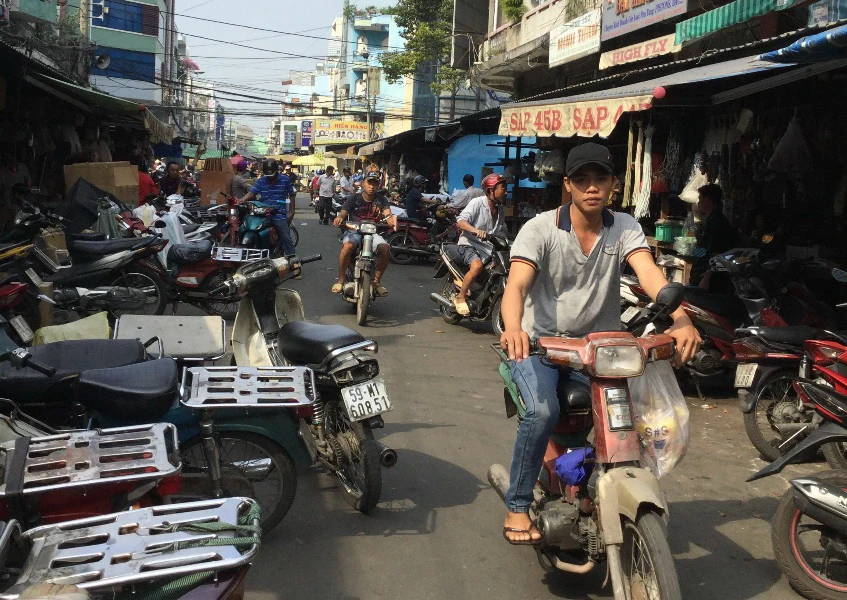 Theo ghi nhận của PV tại khu vực trên, tình hình buôn bán diễn ra tấp nập, xe cộ của người dân đậu ngổn ngang ngay giữa lòng đường. Thỉnh thoảng các xe tải chạy vào khu vực này là các phương tiện qua lại kẹt cứng. Tại các cửa hàng bán phụ tùng xe, khi thấy có người nào chạy ngang thì bị nhân viên lôi vào chào mời mua hàng nên rất dễ làm người khác khó chịu.