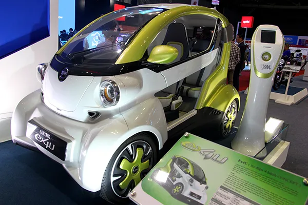 Hãng xe máy SYM giới thiệu chiếc xe ô tô điện concept Ex4U khá đẹp mắt. Mẫu xe này phù hợp với gia đình nhỏ hoặc các bạn trẻ muốn sử dụng thay xe máy. Tuy nhiên, xe chỉ chạy được tốc độ tối đa 50 km/giờ. Ảnh: HOÀNG GIANG