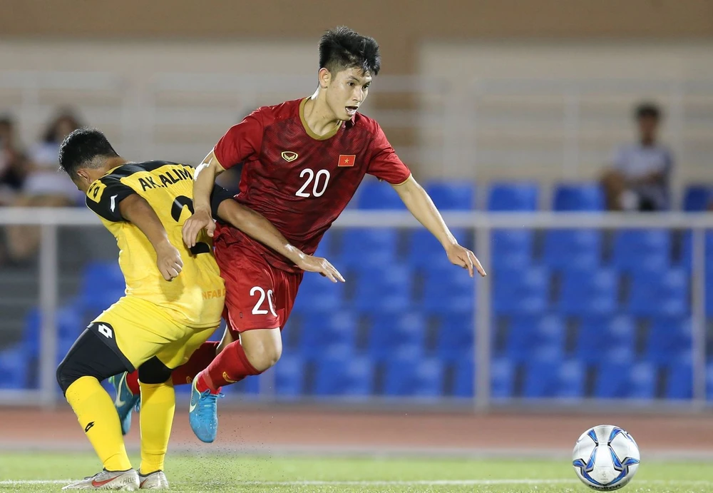Tiền vệ U-22 Việt nam thi đấu xông xáo, góp một bàn vào chiến thắng U-22 Brunei 6-0. ẢNH: ANH PHƯƠNG