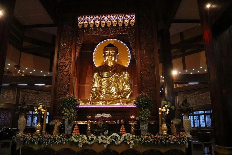 Ngôi đạo tràng tịnh xá có Bảo tháp bằng gỗ thờ Phật trong chánh điện lớn nhất Việt Nam