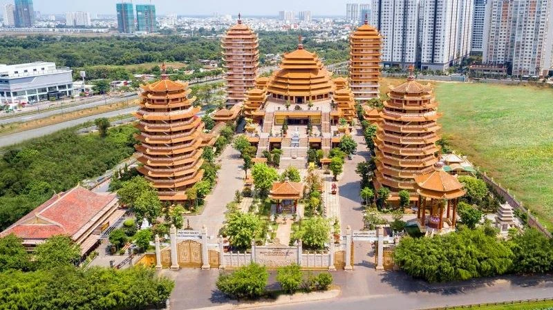 | Dấu ấn đời sống văn hóa tôn giáo của TP.HCM Pháp viện Minh Đăng Quang do Cố Đại lão Hòa thượng Pháp sư Thích Giác Nhiên, nguyên Tổng Tri sự Trưởng Giáo hội Tăng già Khất sĩ Việt Nam, sáng lập năm 1966. Ban đầu Pháp viện chỉ gồm một chánh điện cất tạm hình chữ nhật và một số am cốc bằng tre lá…Tuy nhiên chư tôn đức không quản ngại vừa tu tập, vun xới…để ngôi phạm vũ có được diện mạo trang nghiêm. Năm 2009 Hòa thượng Thích Giác Toàn, hiện là trụ trì đã tổ chức lễ khởi công xây dựng…đến năm 2017 Pháp viện Minh Đăng Quang trên diện tích gần 37.500m2 được chính thức khánh thành. Pháp viện ngày nay là một tự viện với phong cách kiến trúc hiện đại, đặc sắc song vẫn lưu giữ được kiến trúc truyền thống của hệ phái Khất Sĩ. Pháp viện Minh Đăng Quang tọa lạc tại số 505, Xa lộ Hà Nội, P. An Phú, Q.2, TP. HCM, góp thêm một dấu ấn về đời sống văn hóa tôn giáo của thành phố. |