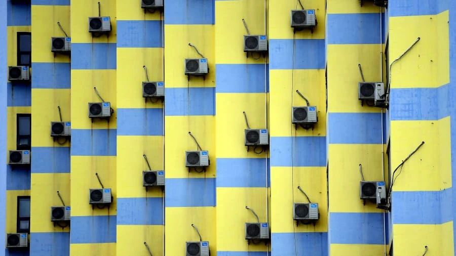 Những chiếc điều hòa này được phát hiện trên một bức tường của một tòa nhà được trang trí rực rỡ ở TP Thẩm Dương, ở phía Đông Bắc tỉnh Liêu Ninh của Trung Quốc. Ảnh: ZUMA PRESS