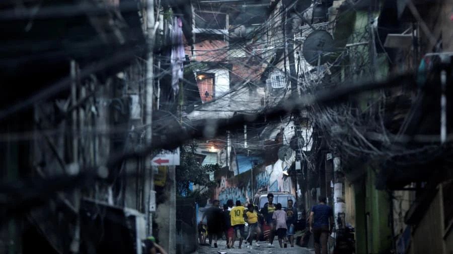 Một đám trẻ chơi bóng ở khu dân cư Rocinha, Rio, Brazil. Ảnh: REUTERS