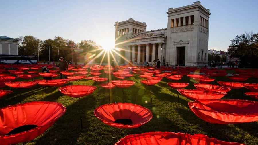 "Never Again", một tác phẩm của nghệ sĩ Walter Kuhn để kỷ niệm 100 năm kết thúc Thế chiến thứ I tại triển lãm ở Munich, Đức. Ảnh: GETTY
