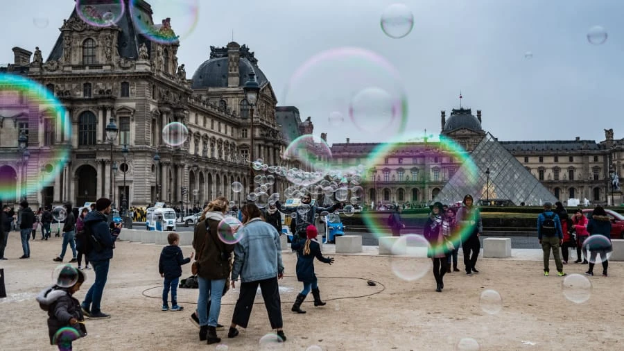 Một khoảnh khắc đẹp trước Bảo tàng Louvre ở Paris, Pháp. Đây là bảo tàng nghệ thuật lớn nhất thế giới với khoảng 8 triệu du khách mỗi năm. Ảnh: AFP