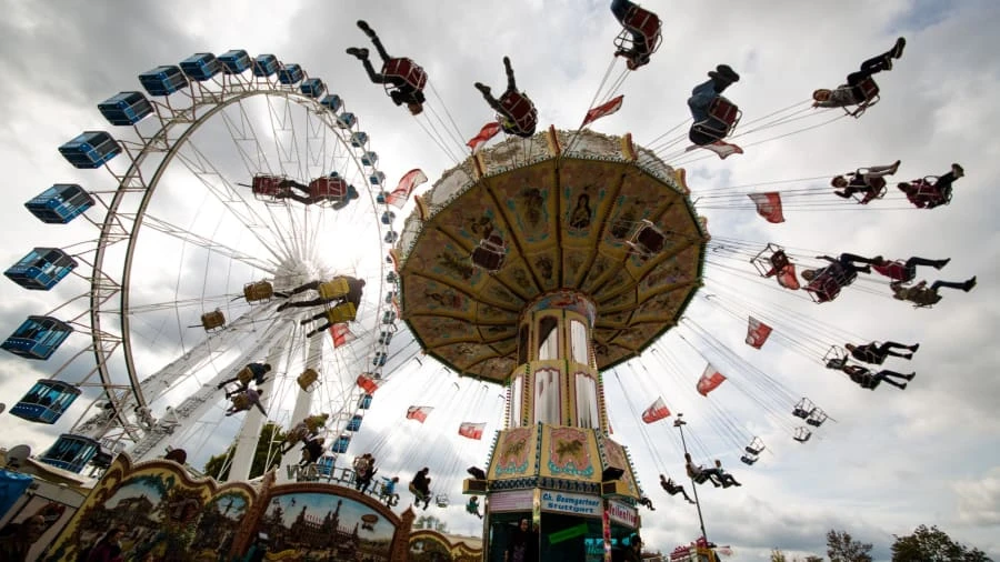 Khu vui chơi tại lễ hội Cannstatter Volksfest lần thứ 173, một lễ hội bia dài ba tuần ở Stuttgart, Đức. Ảnh: ZUMA PRESS