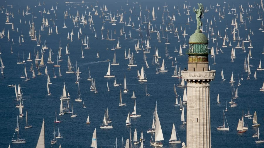 Ảnh chụp tại cuộc đua thuyền Barcolana lần thứ 50 ở Trieste, Ý. Những chiếc thuyền đi qua ngọn hải đăng Chiến thắng. Cuộc đua thuyền lịch sử này được tổ chức hằng năm vào Chủ nhật thứ hai của tháng 10. Ảnh: GETTY