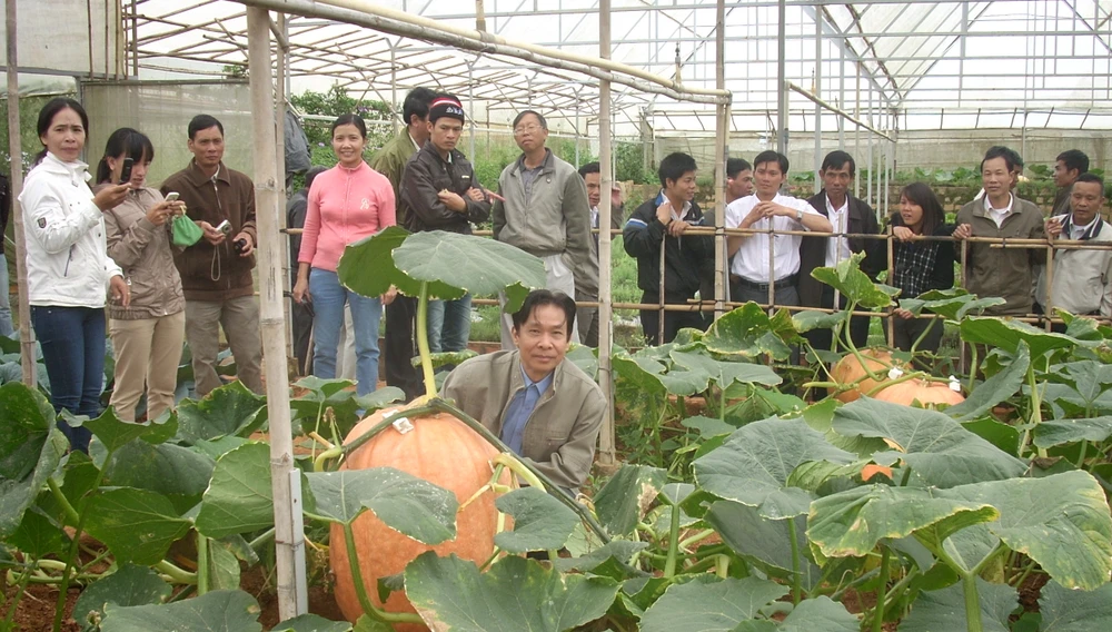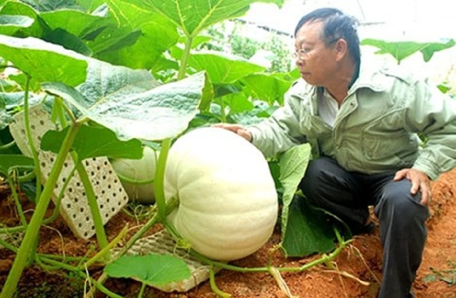 Tiếp chuyện với chúng tôi, ông Phan cho biết đây không phải là lần đầu tiên ông trồng bí khổng lồ phục vụ du khách trong dịp Festival hoa Đà Lạt.