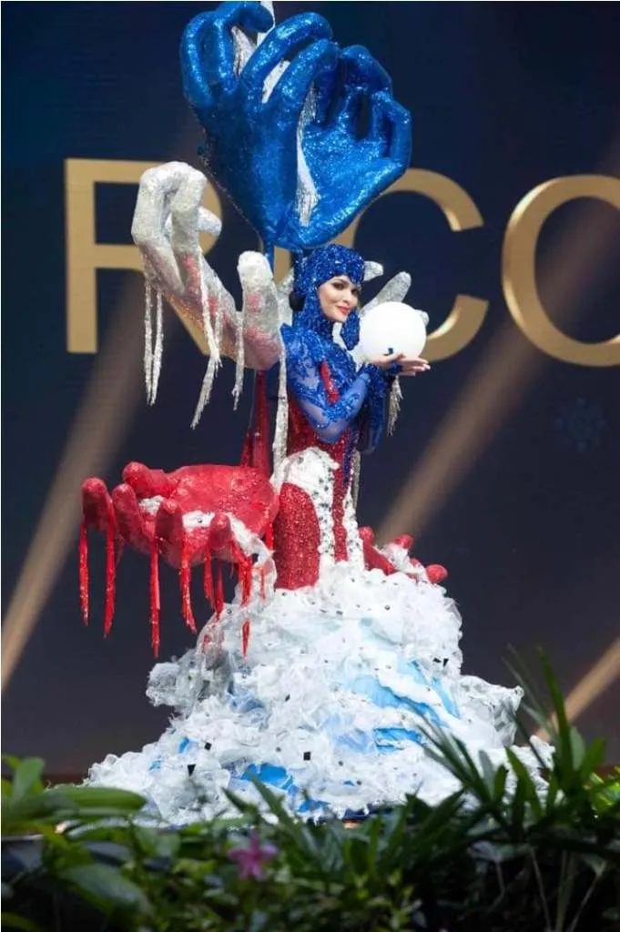 Trang phục dân tộc ấn tượng của hoa hậu Puerto Rico được lấy cảm hứng từ sức mạnh trong tinh thần của người dân quốc gia này khi đối mặt với tương lai.
