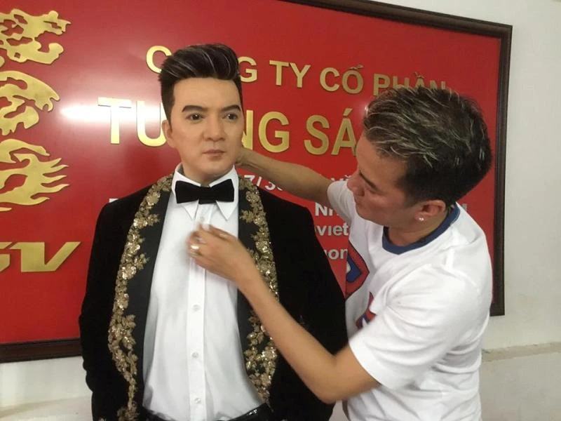 Nam ca sĩ tự tay chăm chút cho bức tượng của mình.