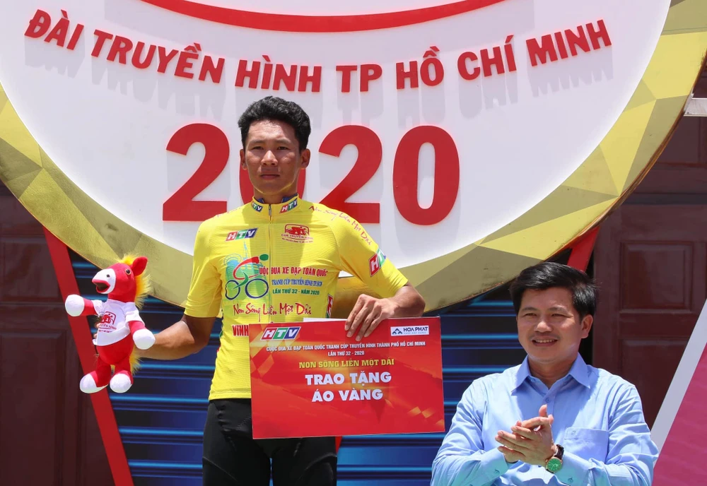 Tay đua 20 tuổi Võ Thanh An lần đầu mặc áo vàng Cúp Truyền hình. ẢNH: HUỲNH VĂN THUẬN
