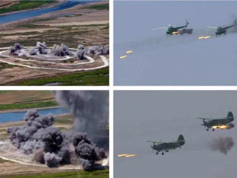 Các hình ảnh được tờ Rodong Sinmun, cơ quan ngôn luận của đảng Lao động Triều Tiên, đăng tải cho thấy các trực thăng và máy bay chiến đấu của Triều Tiên bay theo từng đội hình. Kim Min-seok, nhà nghiên cứu cao cấp tại Diễn đàn an ninh và quốc phòng Hàn Quốc (KODEF), cho biết các chiến đấu cơ MiG-29 và Sukhoi Su-25 Frogfoot đã bay và bỏ bom theo chiều ngang để “tăng tính chính xác”.
