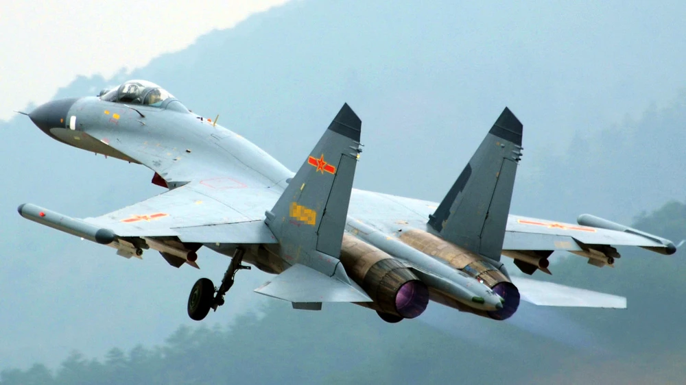 Một chiếc máy bay chiến đấu J-11 với màu sơn xanh-xám cũ. Ảnh: THE DIPLOMAT